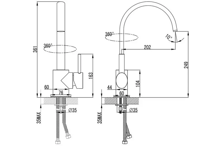 | Тип подводки | Гибкая, в комплекте |