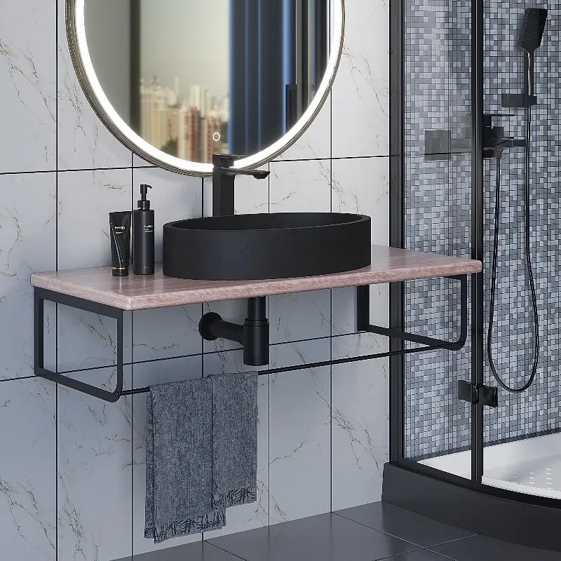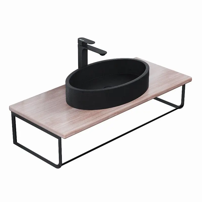 Столешница Uperwood Tanos 100 + раковина Rome + кронштейн Черный / Бук светлый