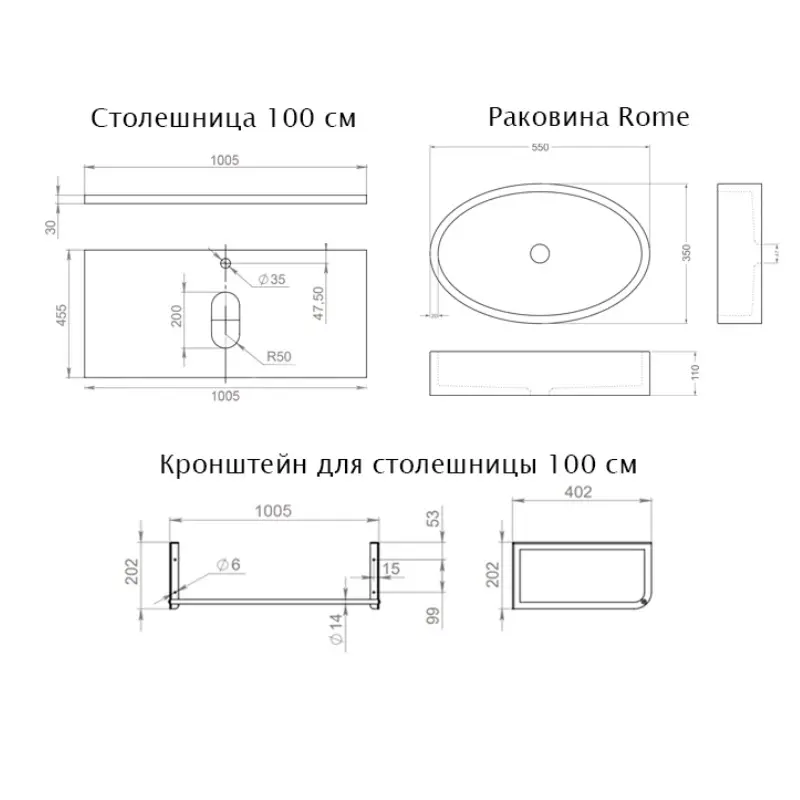 Столешница с раковиной