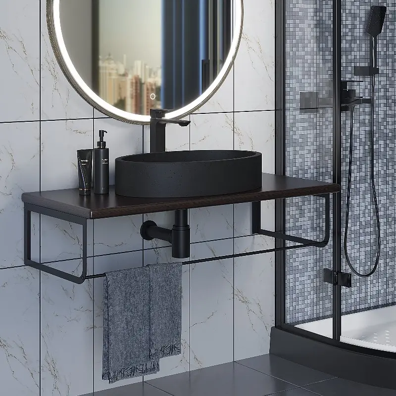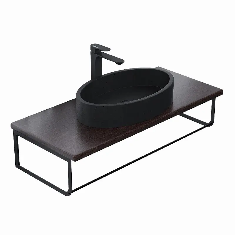 Столешница Uperwood Tanos 100 + раковина Rome + кронштейн Черный / Бук темный