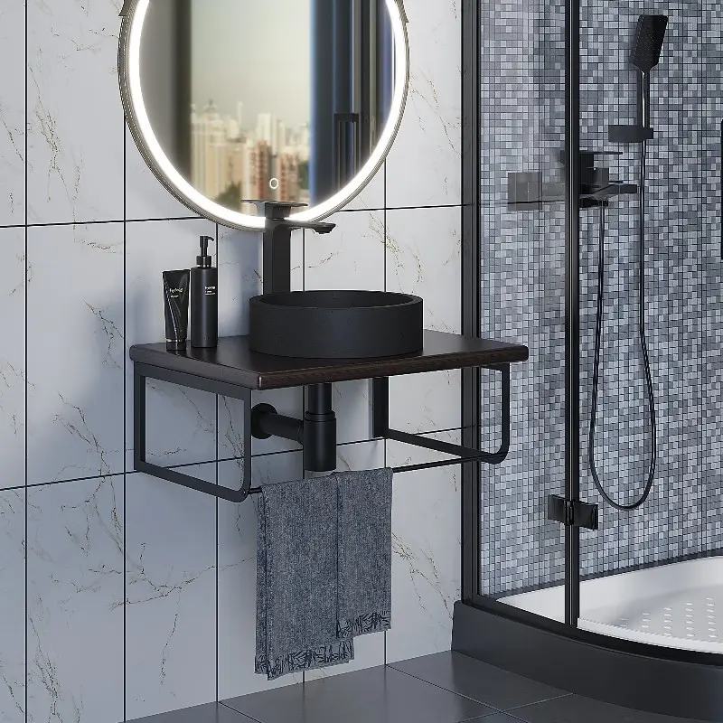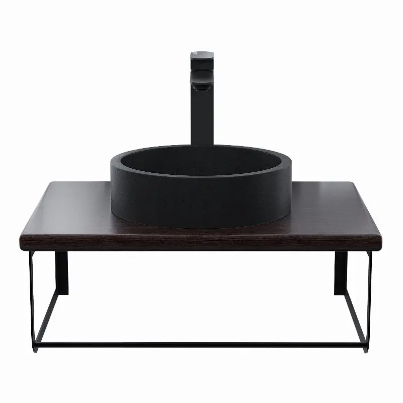 Столешница Uperwood Tanos 60 + раковина Round + кронштейн Черный / Бук темный
