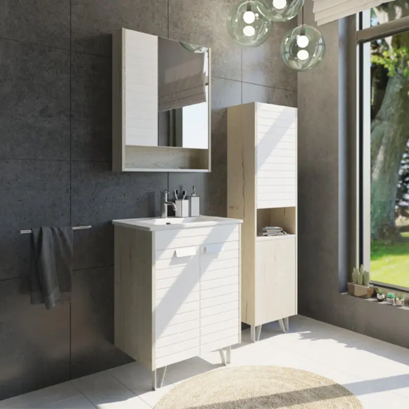 Тумба напольная Comforty Клеон 61 + раковина Белый / Дуб дымчатый 00-00003149