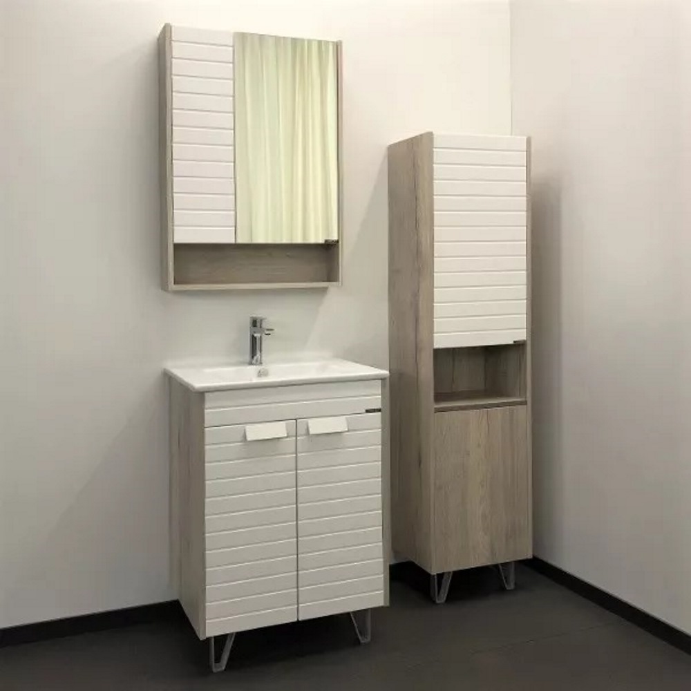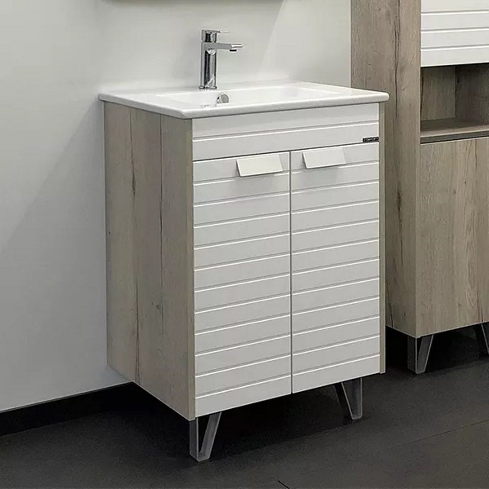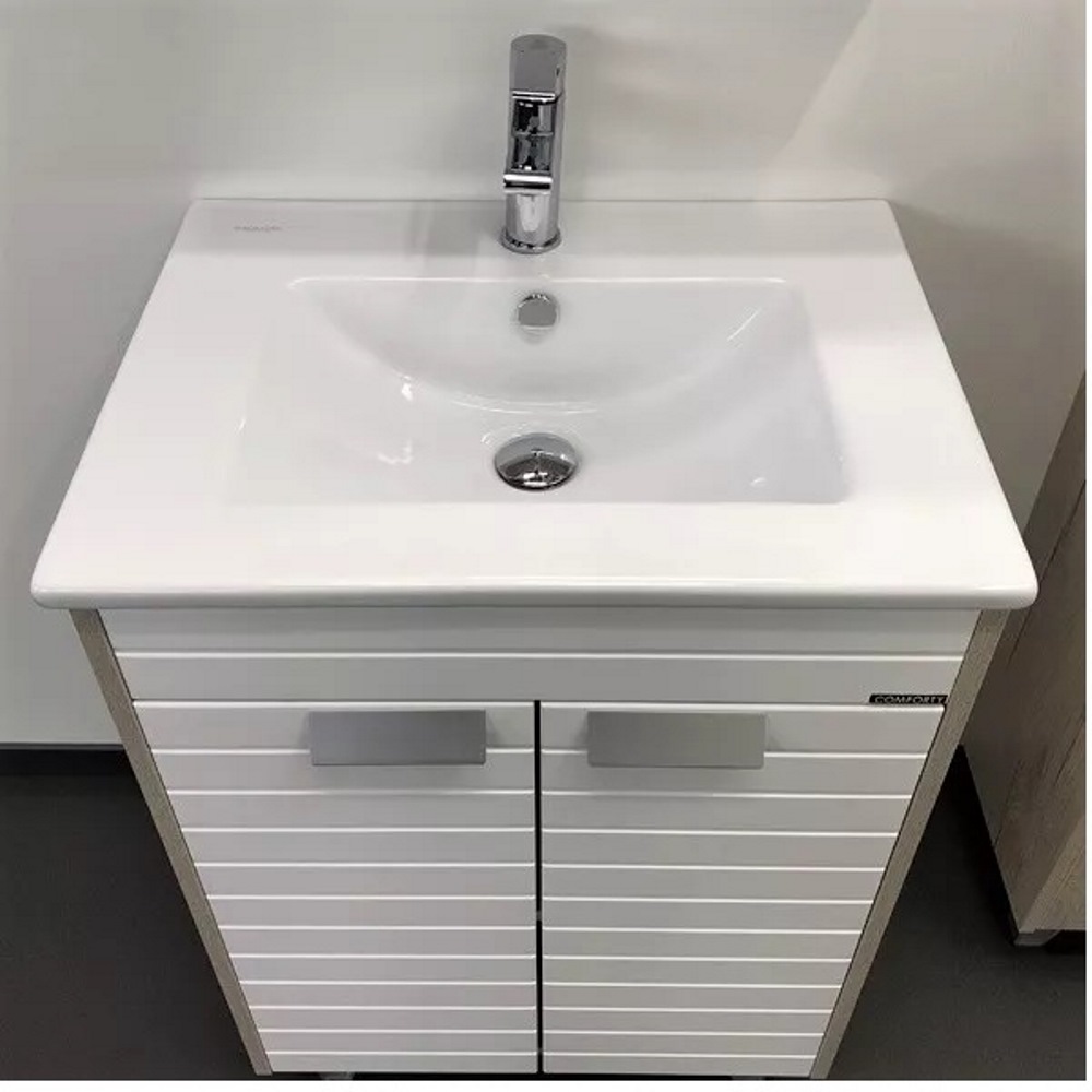 Тумба напольная Comforty Клеон 61 с раковиной Quadro 60 Белый матовый / Дуб дымчатый 00-00002044CF