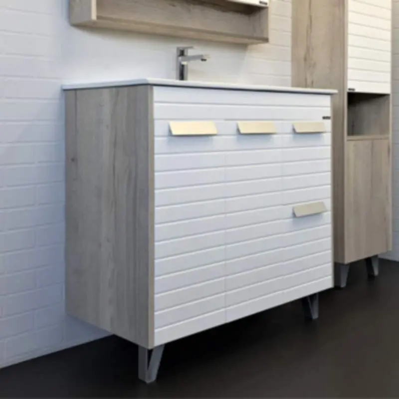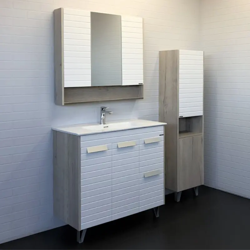 Тумба напольная Comforty Клеон 91 + раковина Белый / Дуб дымчатый 00-00004757CF