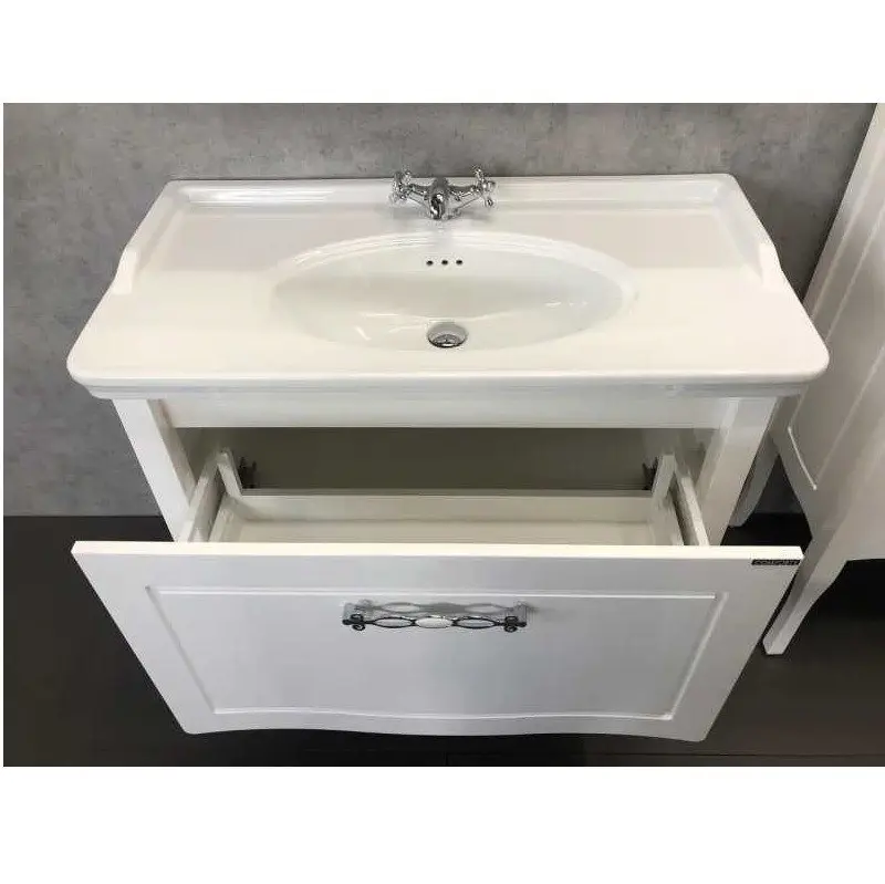 Тумба напольная Comforty Павия 100 + раковина Белый глянцевый 4147999