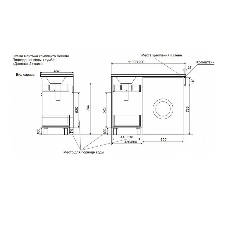 | Тип тумбы | Под встраиваемую раковину |