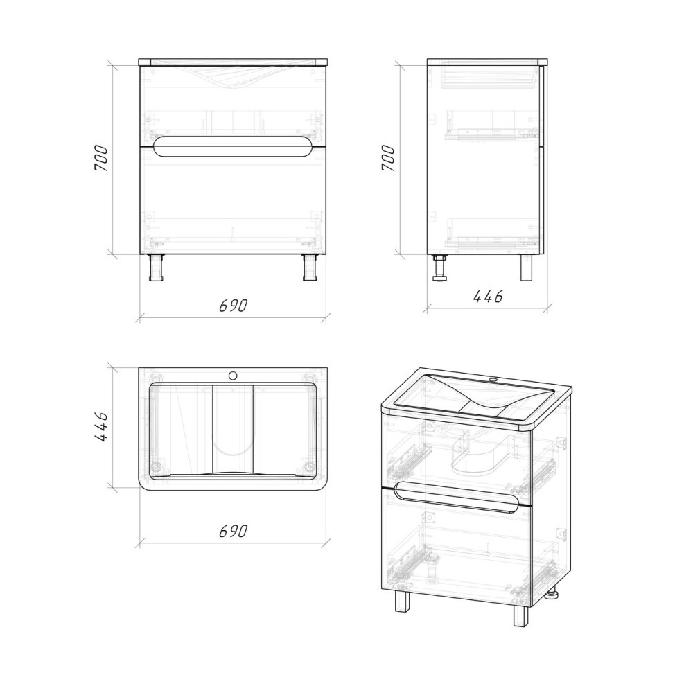 Тумба напольная Grossman из коллекции Адель — идеальное дополнение ванной комнаты в современном стиле. Тумба изготовлена из качественных материалов. Модель имеет прямоугольную форму и размер 69х44,6 см. В коллекции представлены — зеркала, шкафчики и пеналы. Раковина приобретается отдельно.