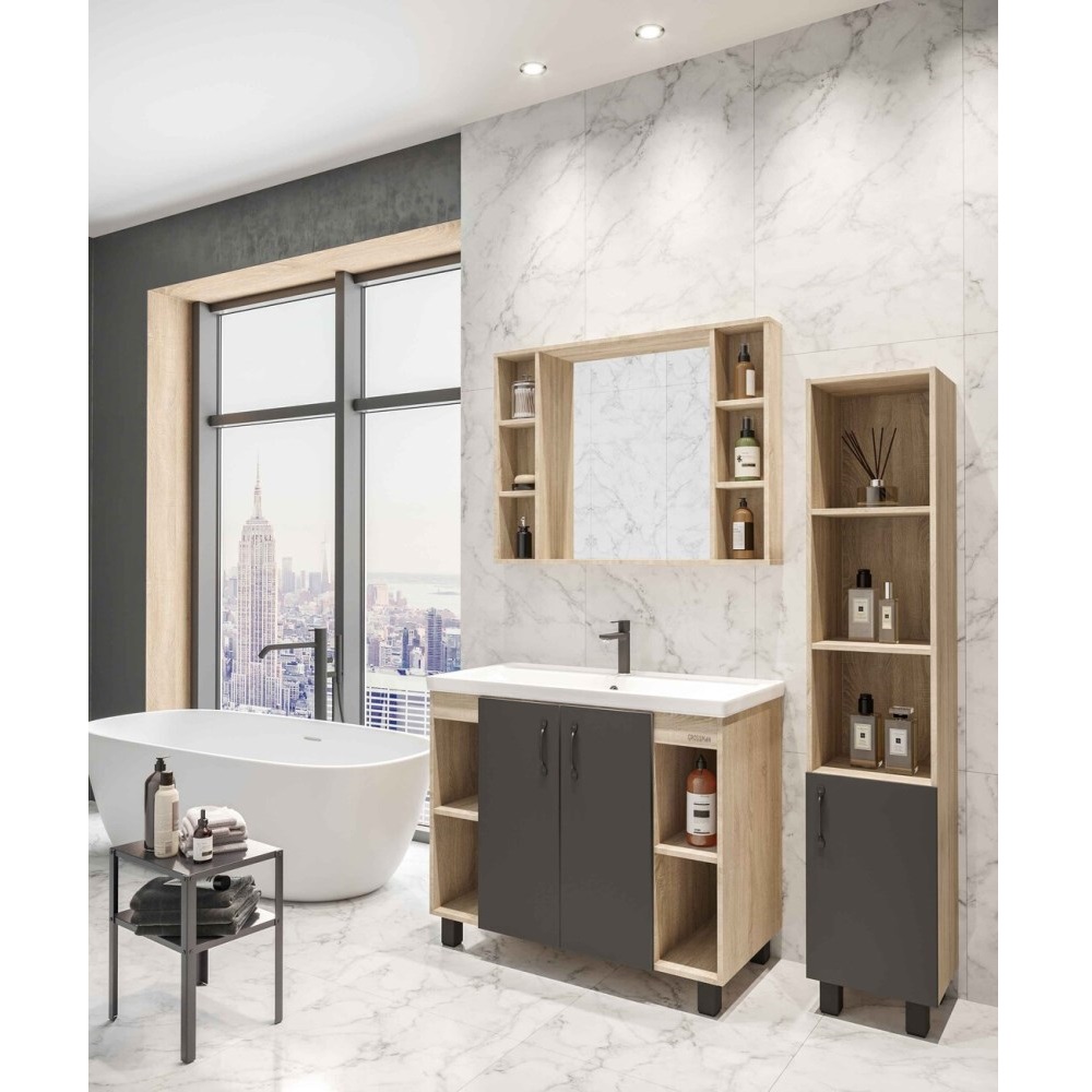 Тумба напольная Grossman Флай 100 Дуб сонома / Серый 101002