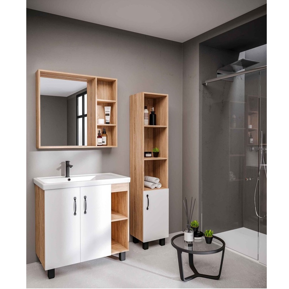 Тумба напольная Grossman из коллекции Флай — идеальное дополнение ванной комнаты в современном стиле. Тумба изготовлена из качественных материалов. Модель имеет прямоугольную форму и размер 81х46,7 см. В коллекции представлены — зеркала, шкафчики и пеналы. Раковина приобретается отдельно.