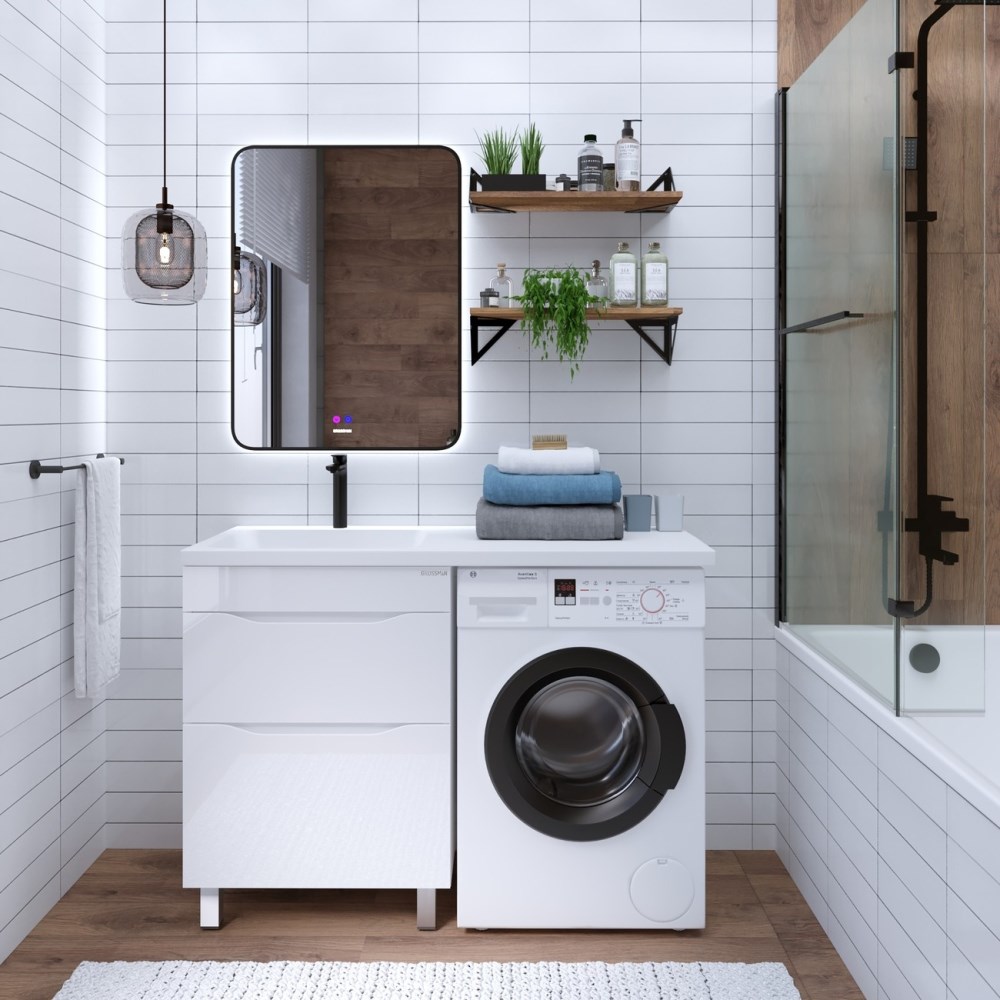 Тумба напольная Grossman Вилар 57 под стиральную машину Белый глянцевый 126011