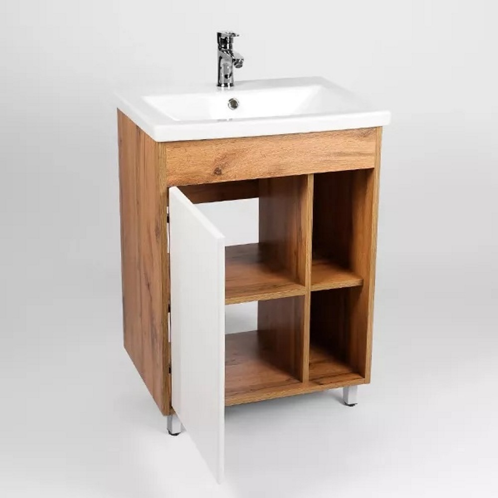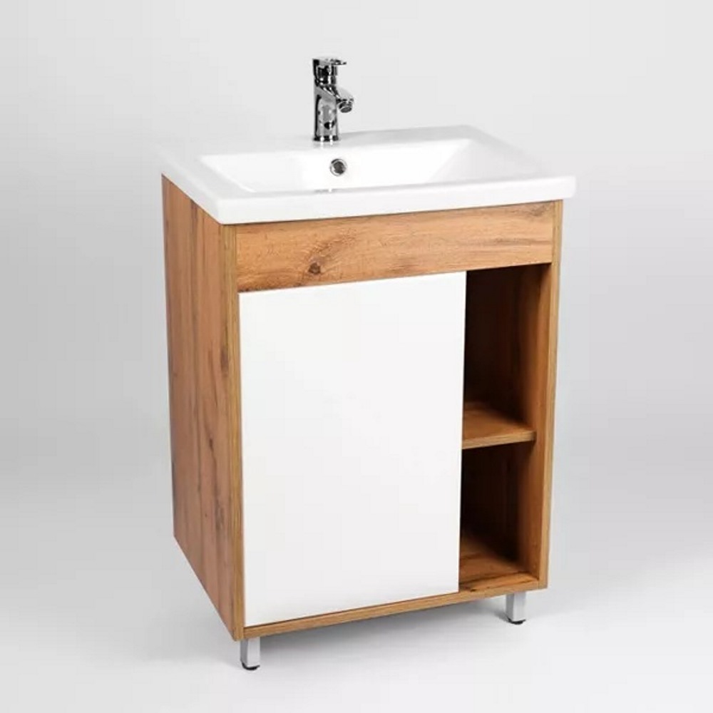 Тумба напольная Viant Бостон 60 с раковиной Como Белый / Дуб Вотан VBOS60CO-T1ST