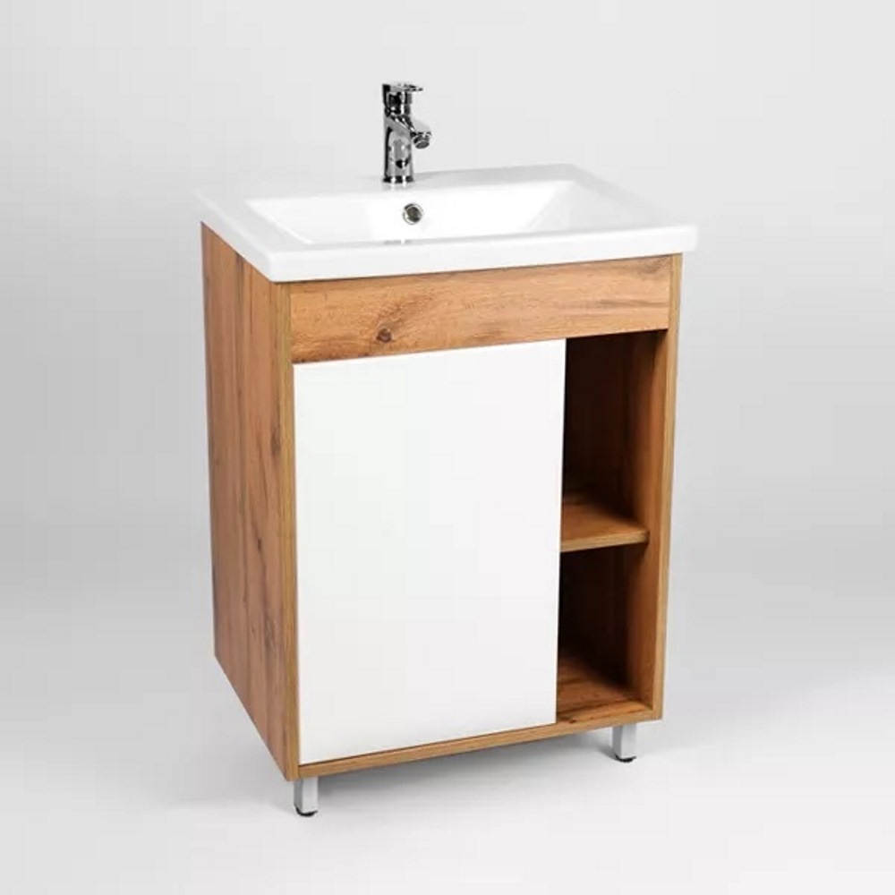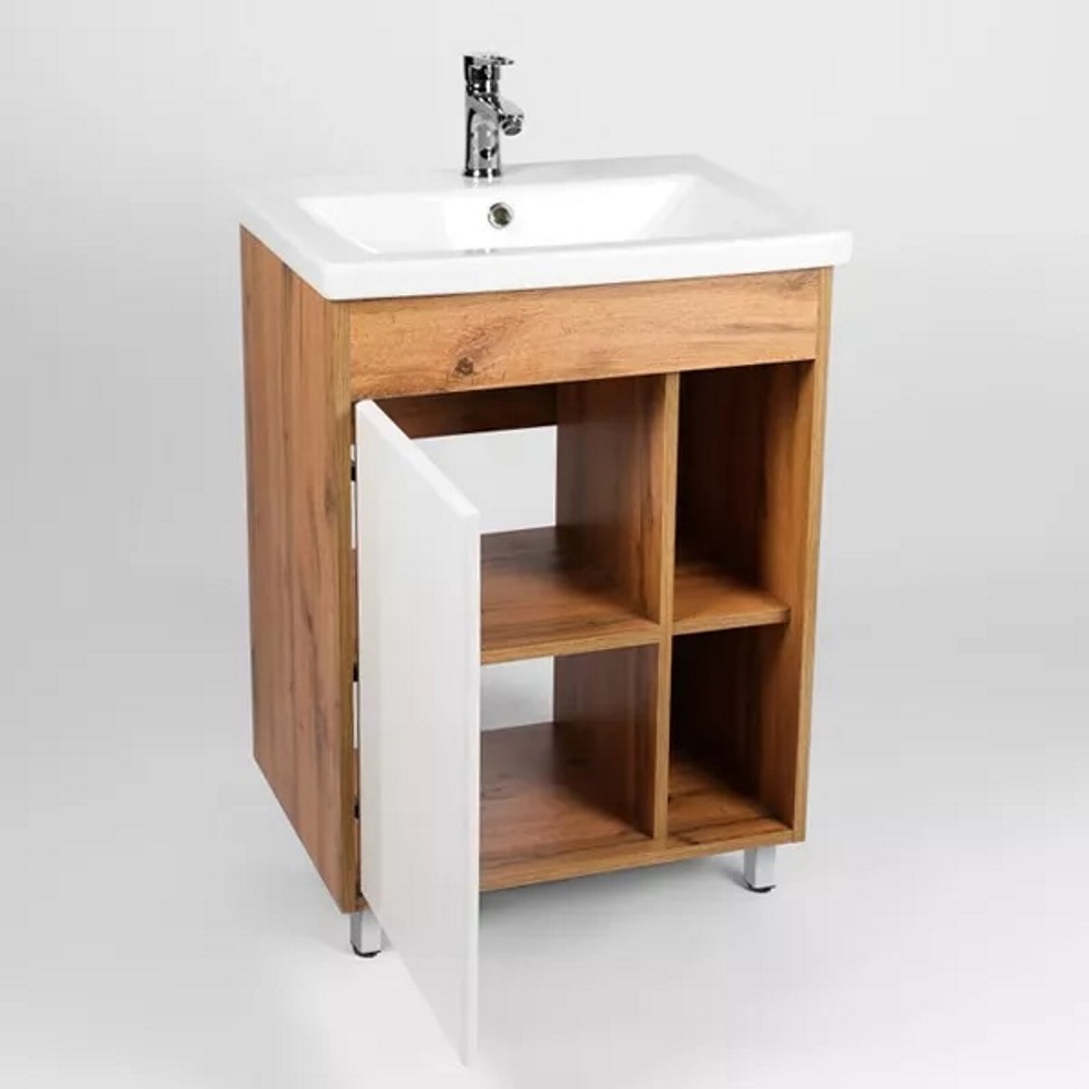 Тумба напольная Viant Бостон 70 с раковиной Como Белый / Дуб Вотан VBOS70CO-T1ST