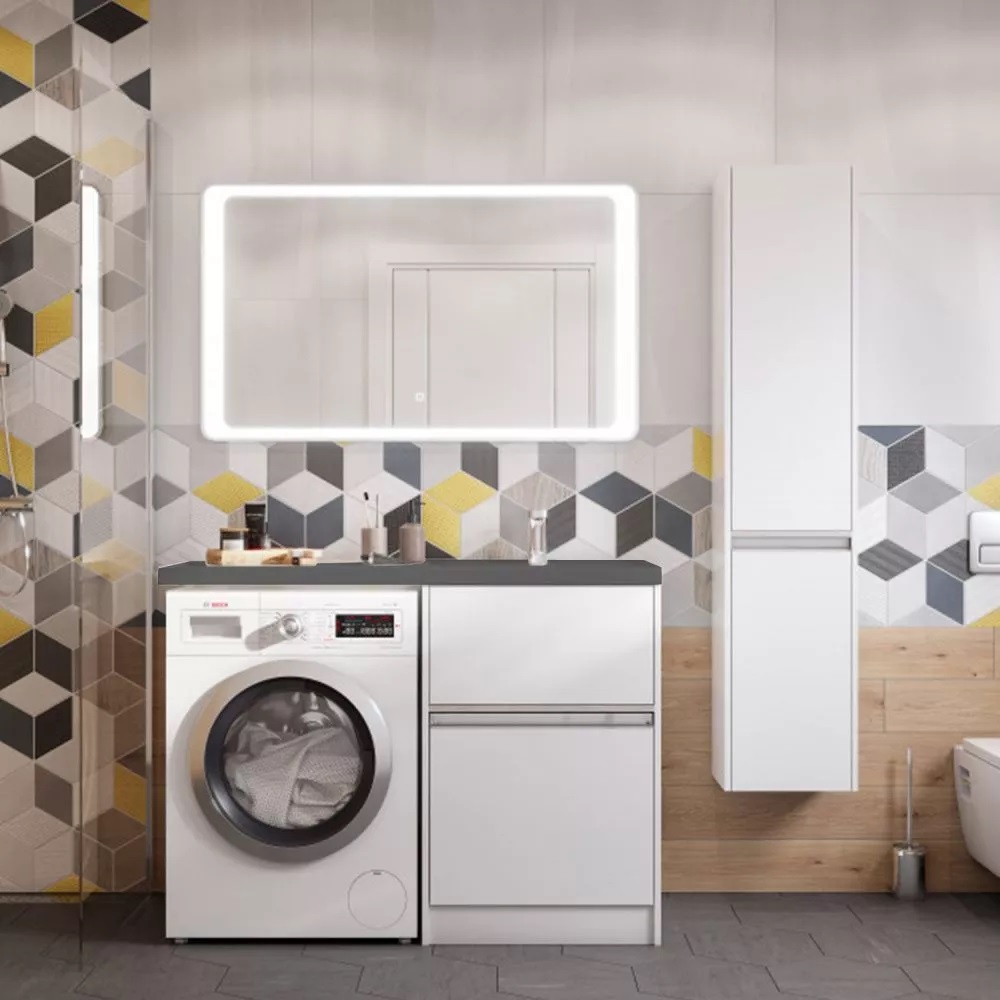 Тумба под стиральную машину напольная Aquaton Лондри 120 с раковиной Лондри правая Белый 1A2359K3LH010
