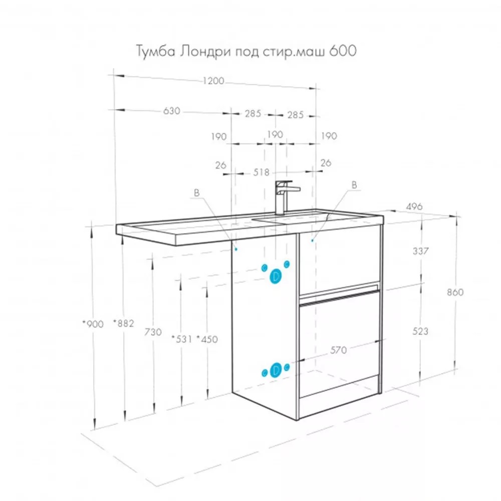 | Тип изделия | Тумба под стиральную машину напольная |