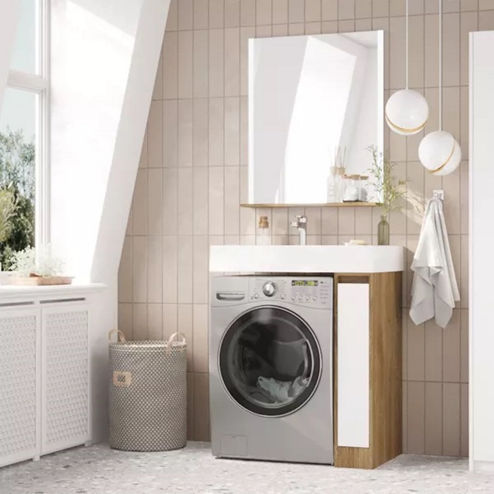 Тумба под стиральную машину напольная Aquaton Лондри 18 Дуб Кантри / Белый 1A2671K2LHDY0