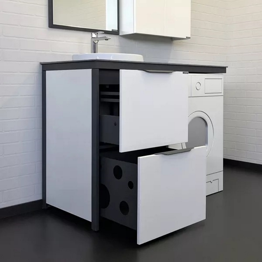 Тумба под стиральную машину напольная Comforty Лозанна 120 с графитовой столешницей с раковиной Art Inside Белый матовый 00-00014813CF