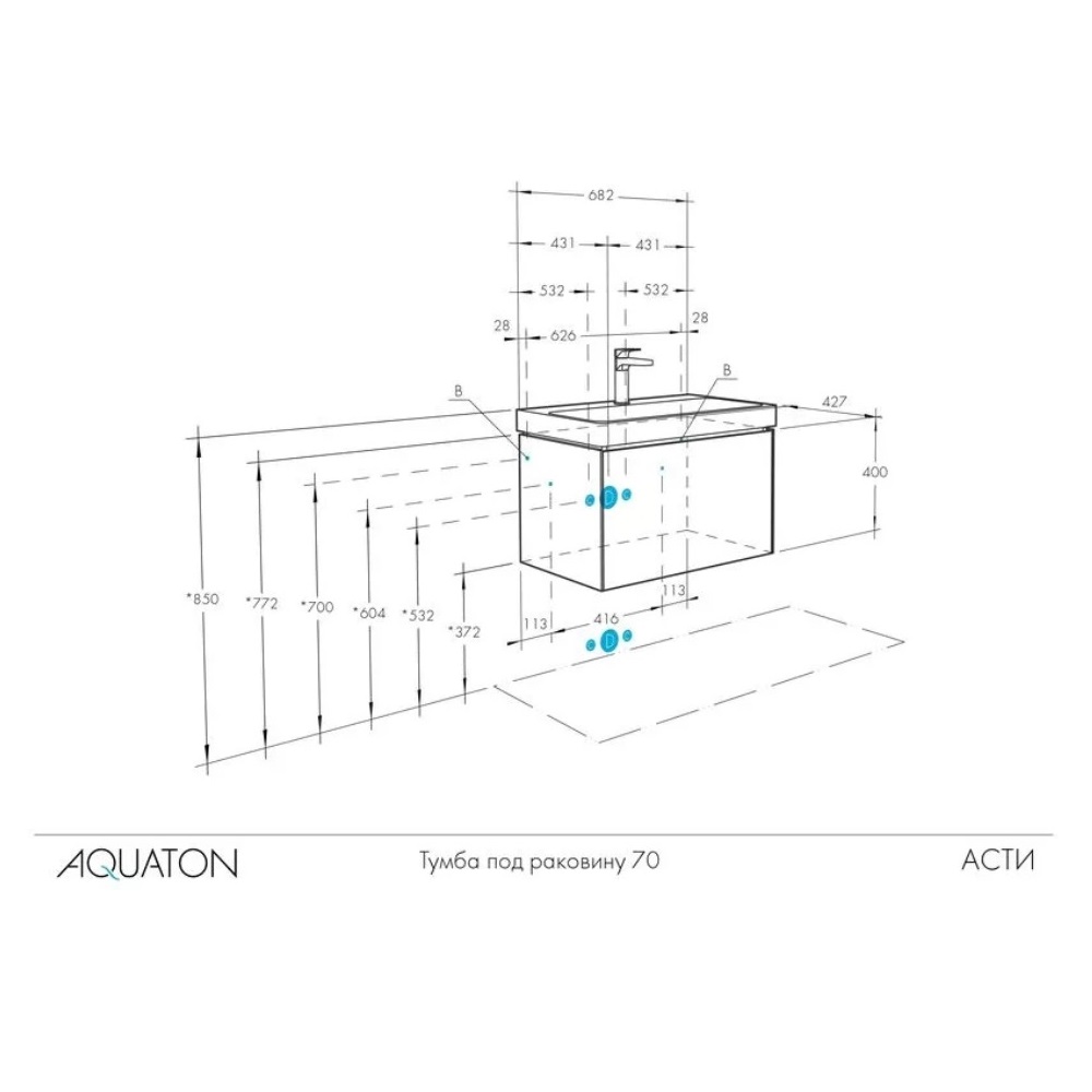 Тумба подвесная Aquaton Асти 70 с раковиной Адриана Белый 1A2630K0AX2B0