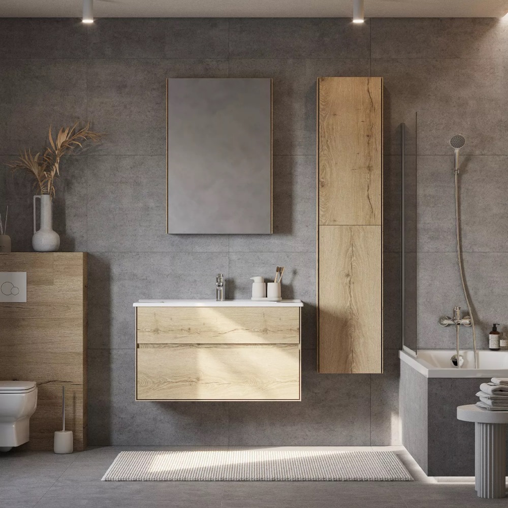 Тумба подвесная Aquaton Либерти 100 с раковиной Элина Дуб Эльвезия 1A2796K0LYC70