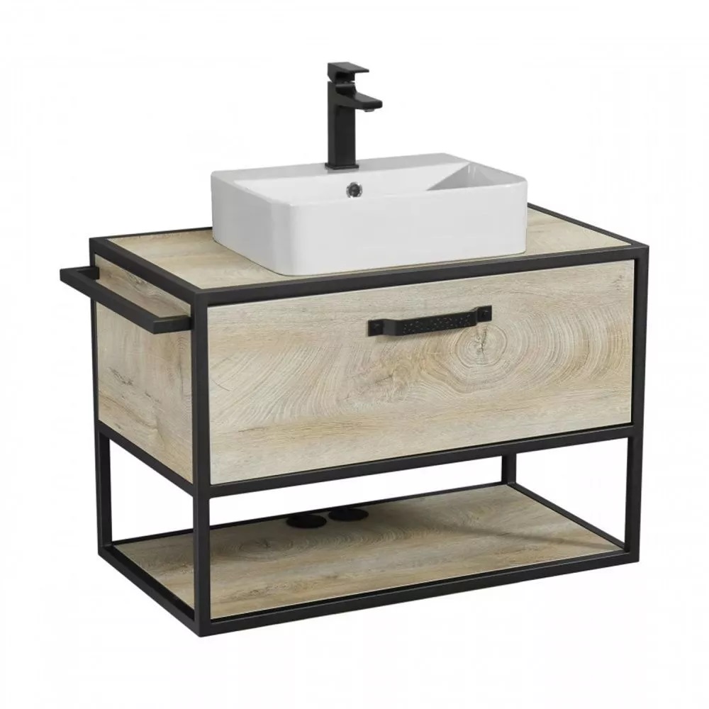 Тумба подвесная Aquaton Лофт Фабрик 80 со столешницей и раковиной Geometry Дуб Эндгрейн 1A2424K8LTDU0