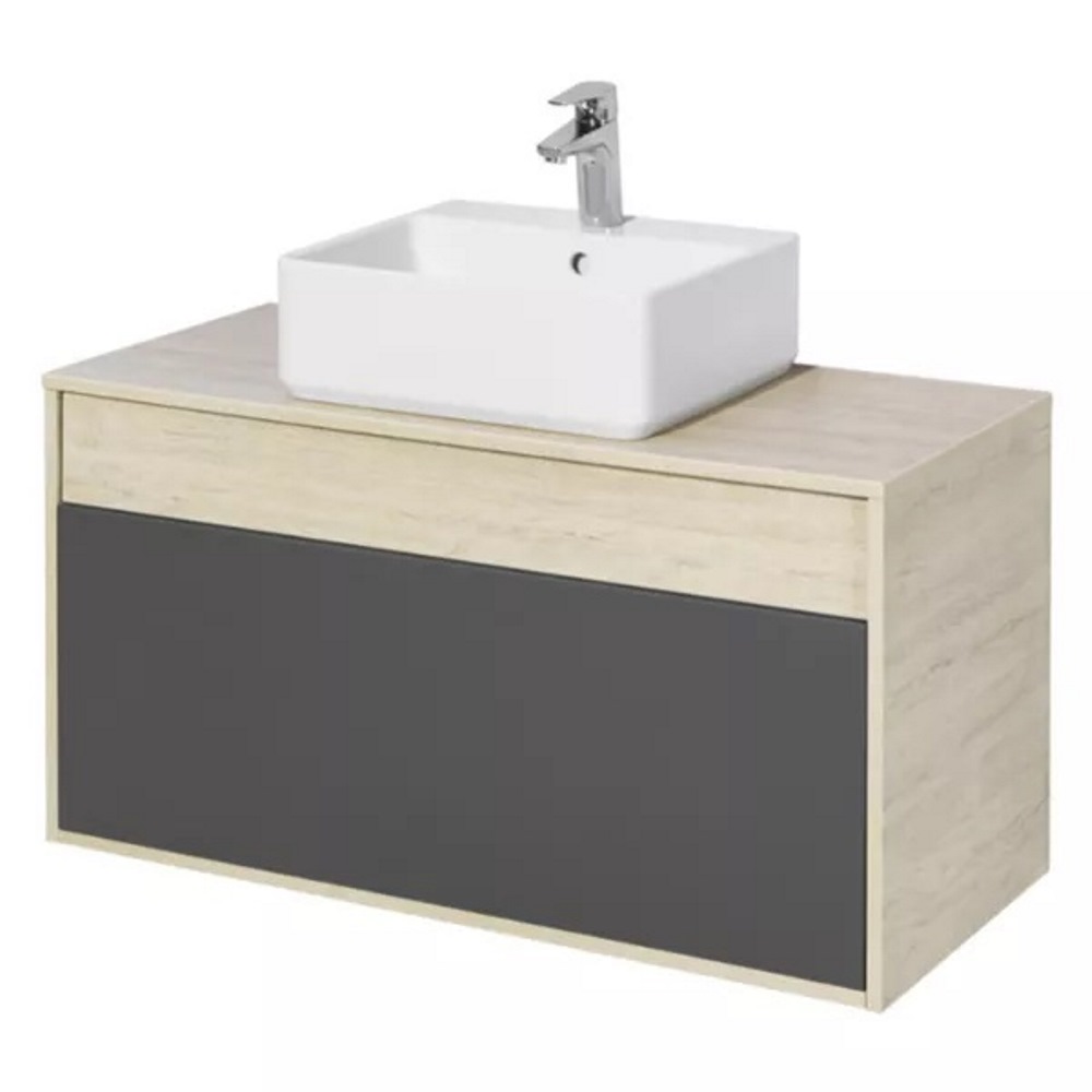 Тумба подвесная Aquaton Лофт Урбан 100 с раковиной GEOMETRY Серый графит / Дуб орегон 1A2477K1LQX60