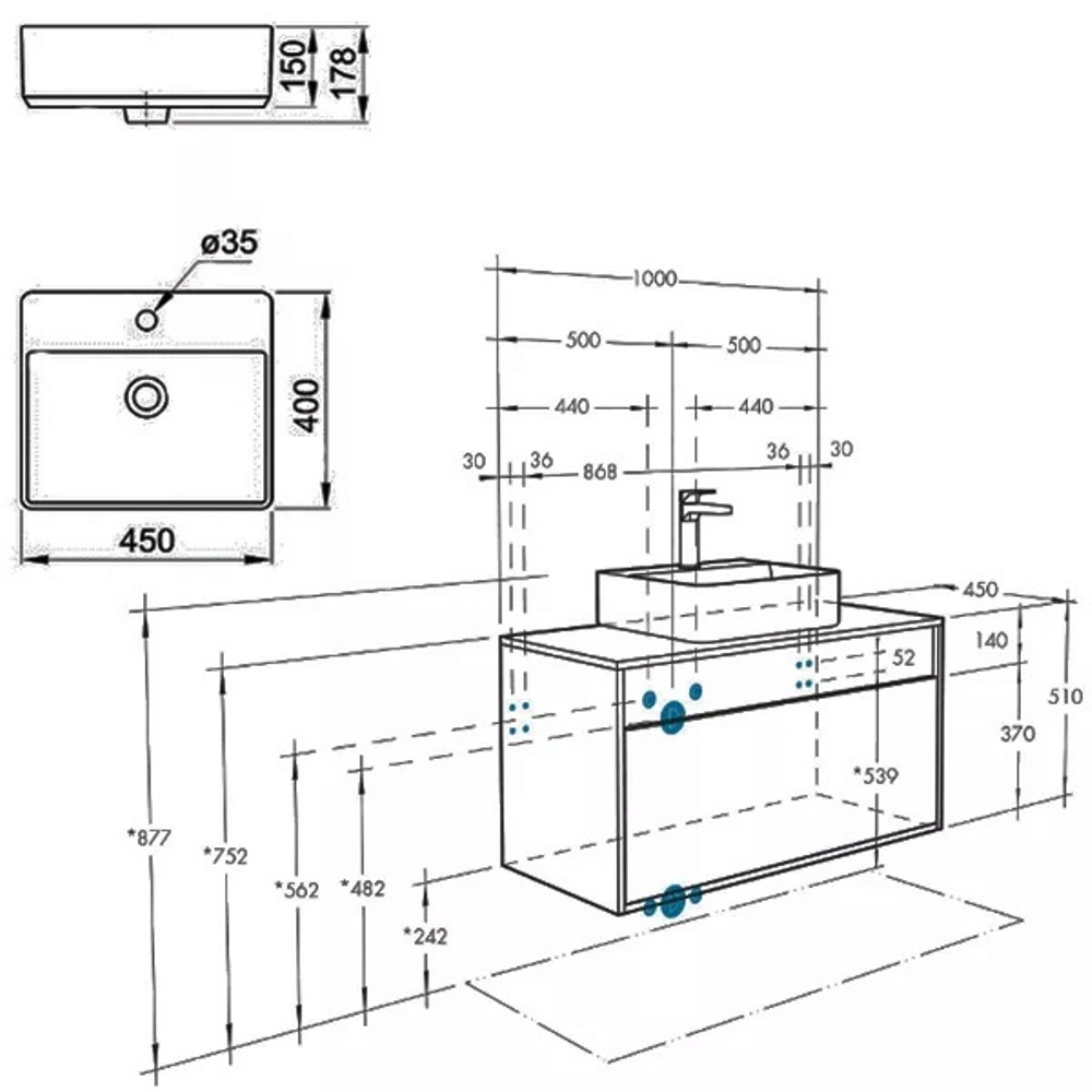 | Форма раковины | Прямоугольная |