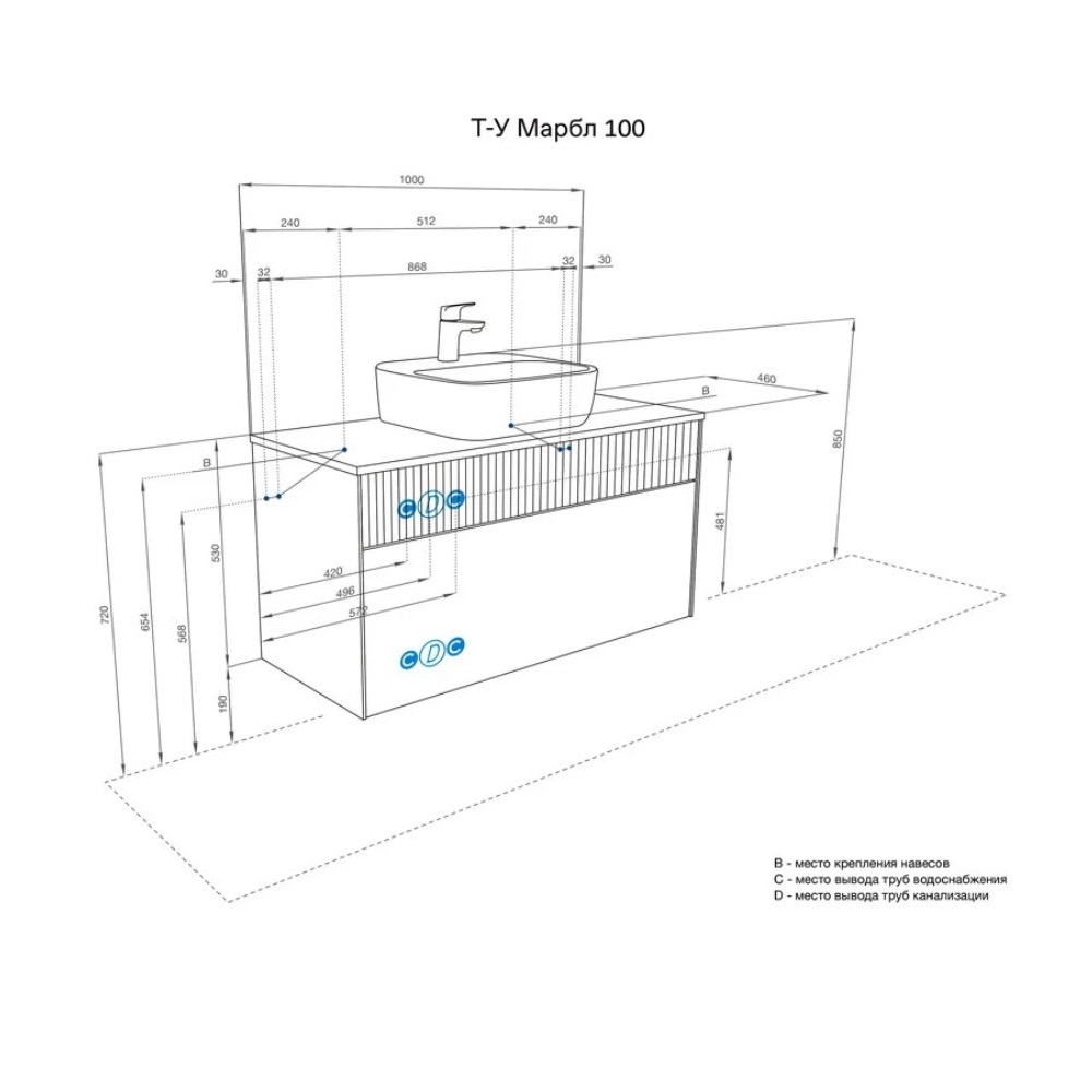 Тумба подвесная Aquaton Марбл 100 с раковиной Mila Слэйт / Белый матовый 1A2763K1MH4C0