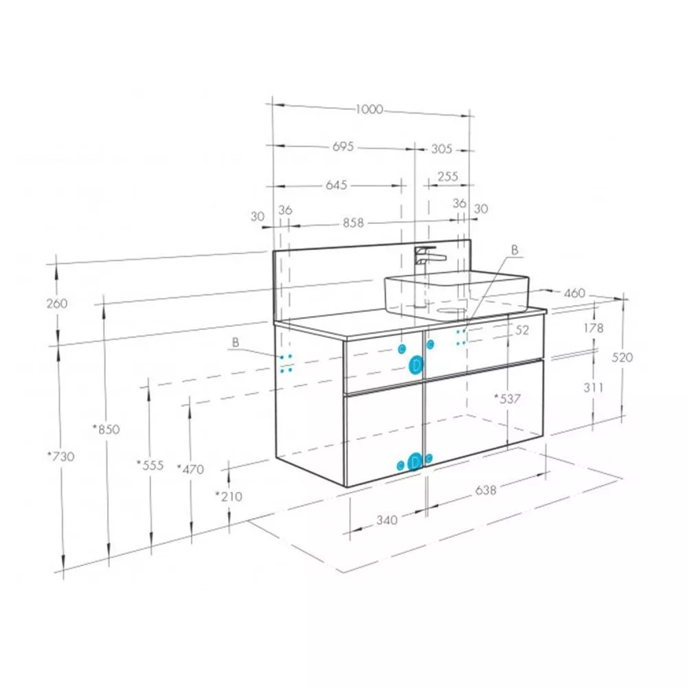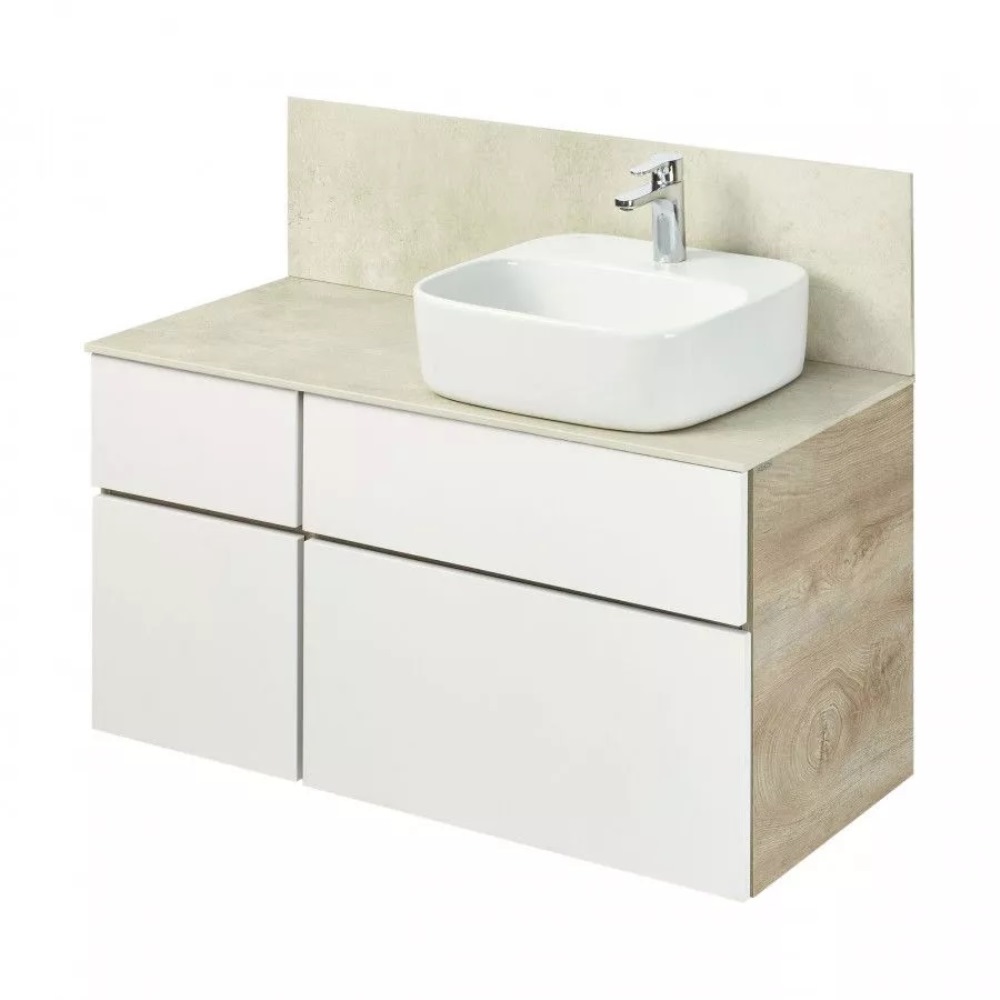 Тумба подвесная Aquaton Мишель 100 со столешницей и панелью керамогранит c раковиной Одри Soft Дуб эндргейн / Белый 1A2773K2MIX40