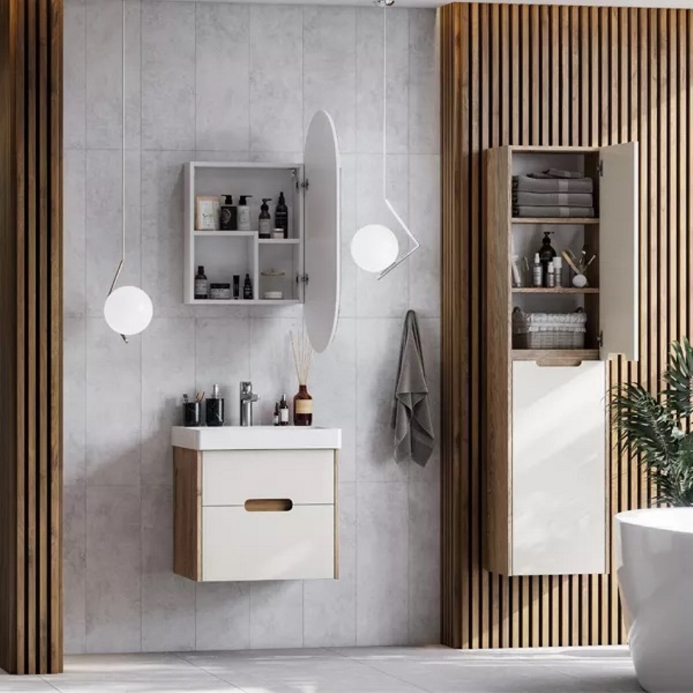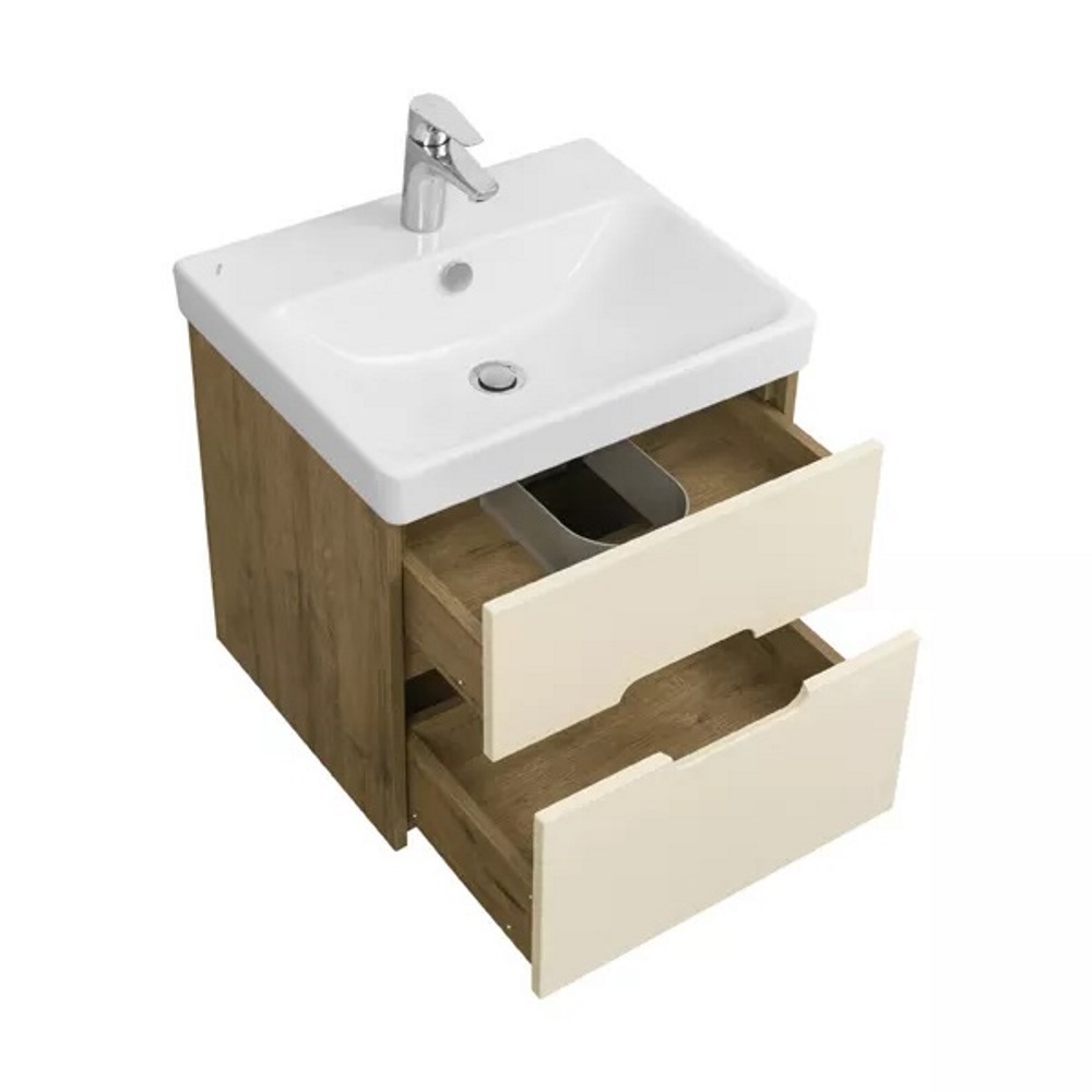 Тумба подвесная Aquaton Оливия 55 с раковиной Адриана Бежевый / Дуб Веллингтон 1A2542K0OLVG0