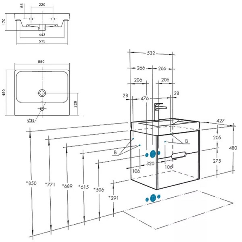 | Форма раковины | Прямоугольная |