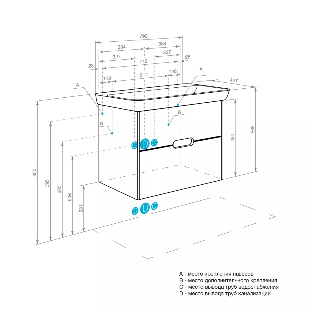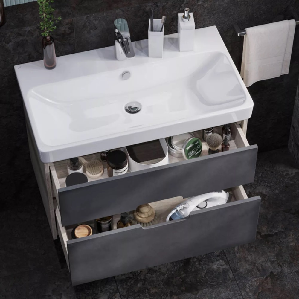 Тумба подвесная Aquaton Оливия 80 с раковиной Адриана Грей / Дуб Ойстер 1A2831K0OLUG0