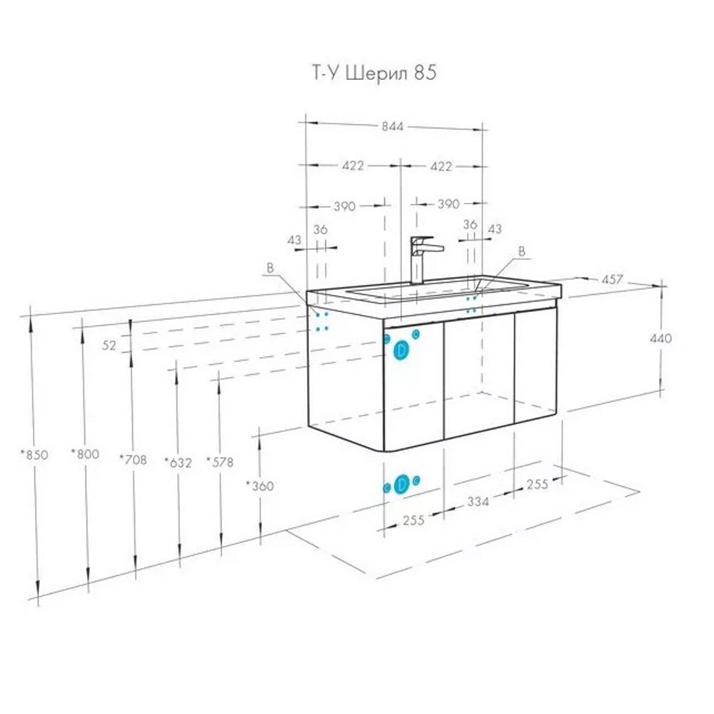 Тумба подвесная Aquaton Шерилл 85 с раковиной Шерилл Белый 1A2088K1SH010