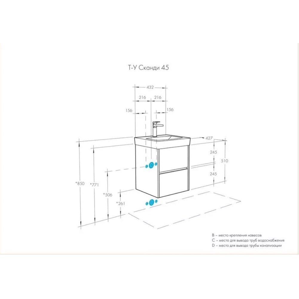 Тумба подвесная Aquaton Сканди 45 с раковиной Адриана Белый 1A2516K0SD010