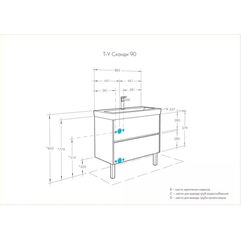 Тумба подвесная Aquaton Сканди 90 с раковиной Адриана Белый 1A2519K0SD010