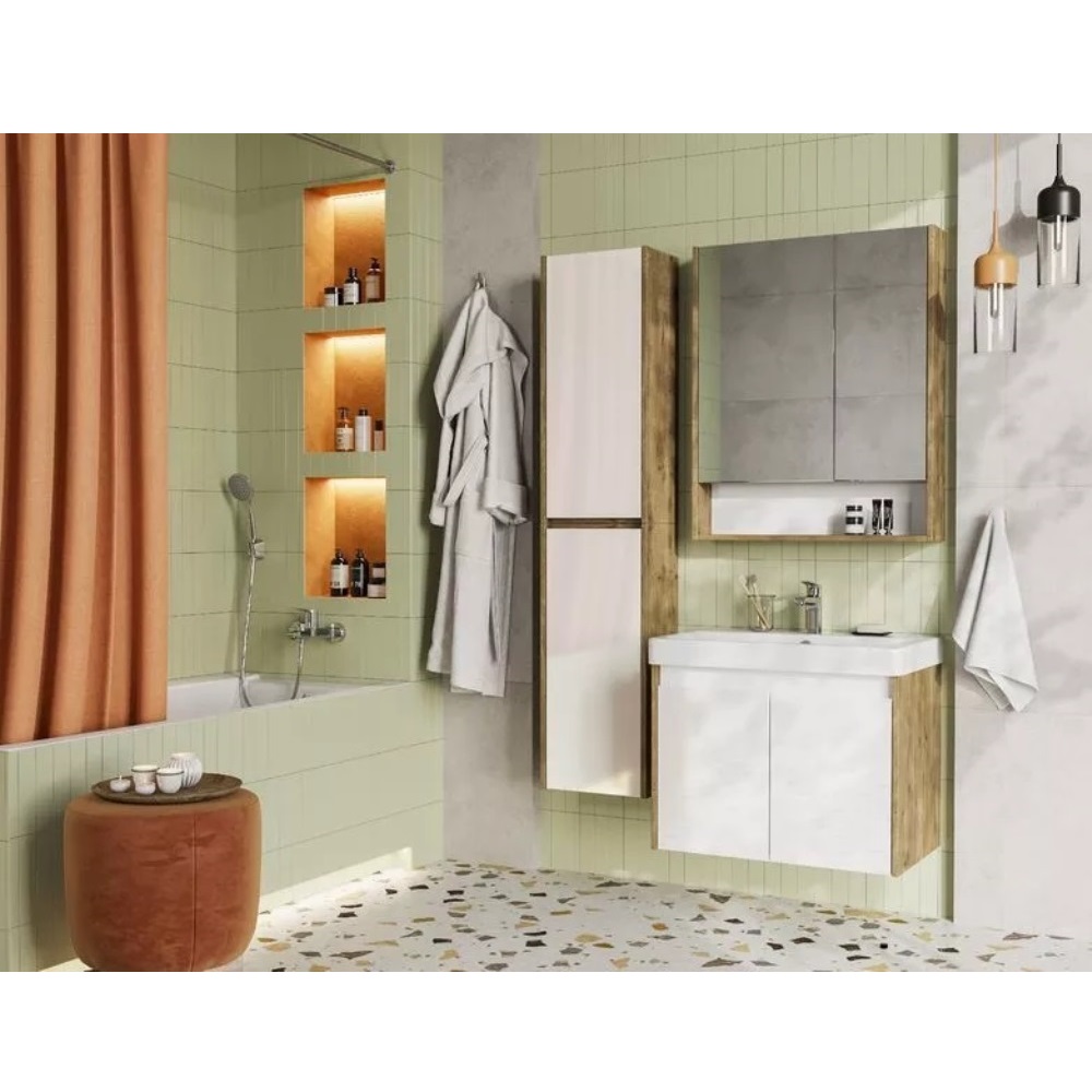 Тумба подвесная Aquaton Сканди Doors 70,5 с раковиной Адриана Белый / Дуб Рустикальный 1A2789K0SDZ90