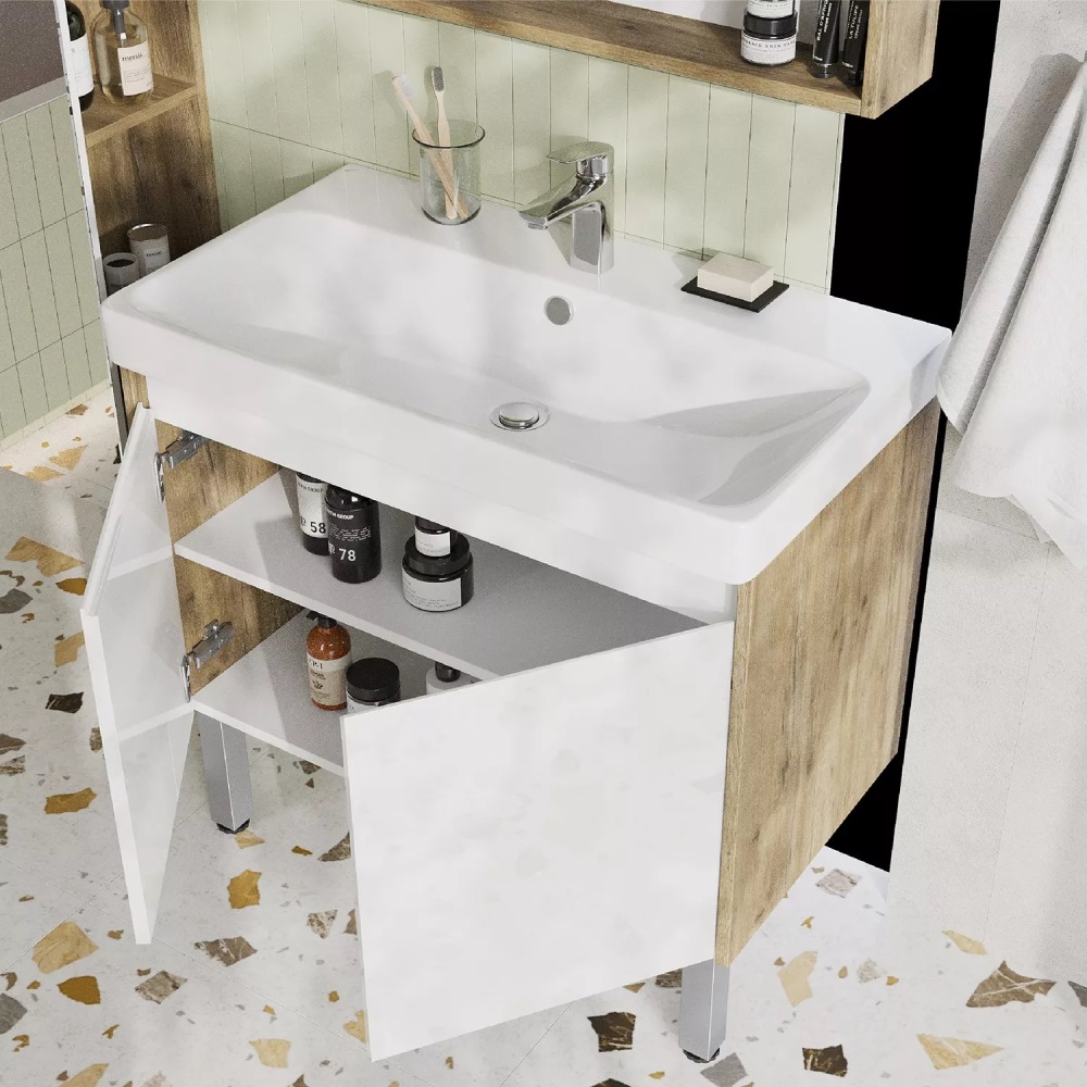 Тумба подвесная Aquaton Сканди Doors 80 с раковиной Адриана Белый / Дуб рустикальный 1A2829K0SDZ90