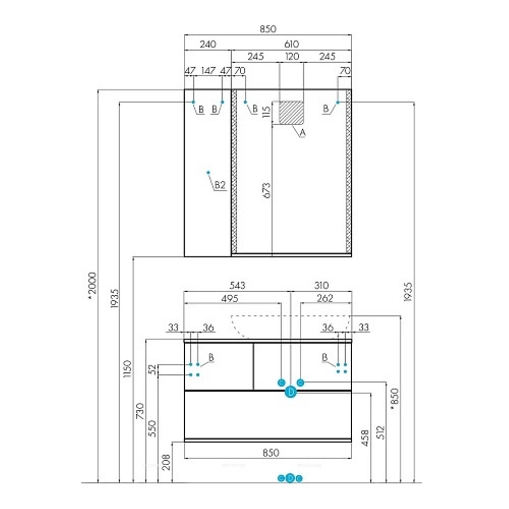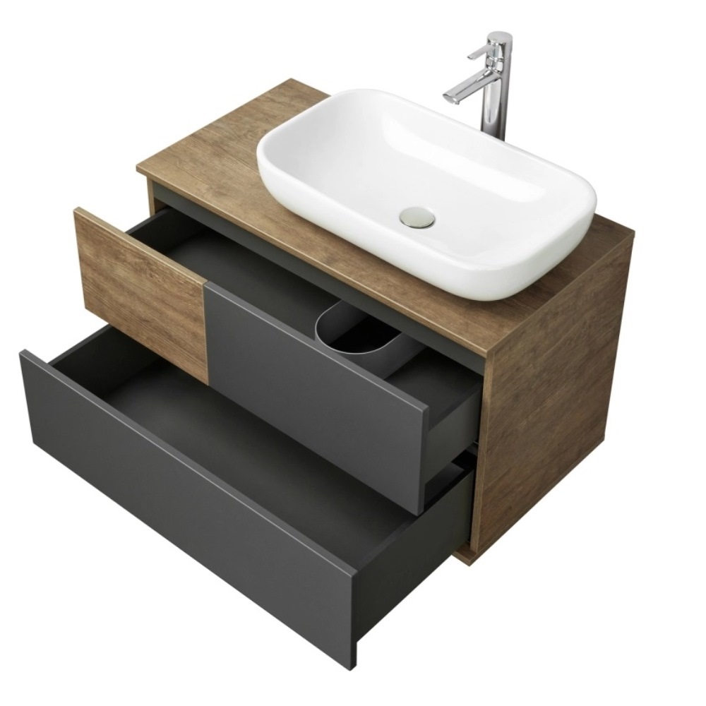 Тумба подвесная Aquaton Терра 85 с раковиной Лола Дуб Кантри / Антрацит 1A2472K2TEKA0
