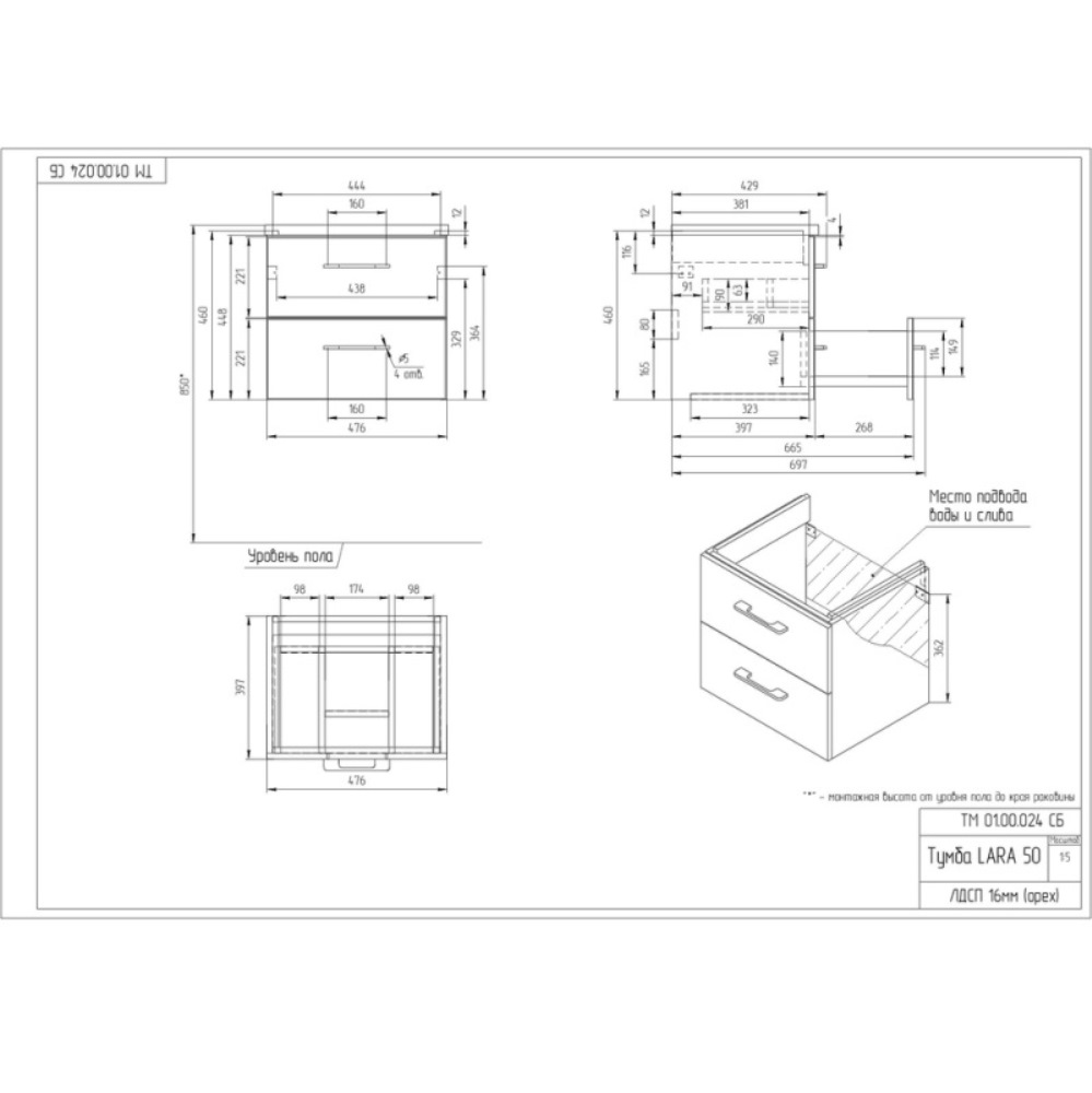 Тумба подвесная Cersanit Lara 50 Орех 63413