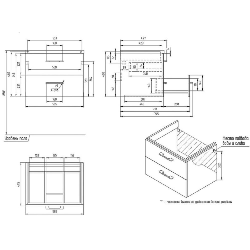 Тумба подвесная Cersanit Lara 60 Орех 64134