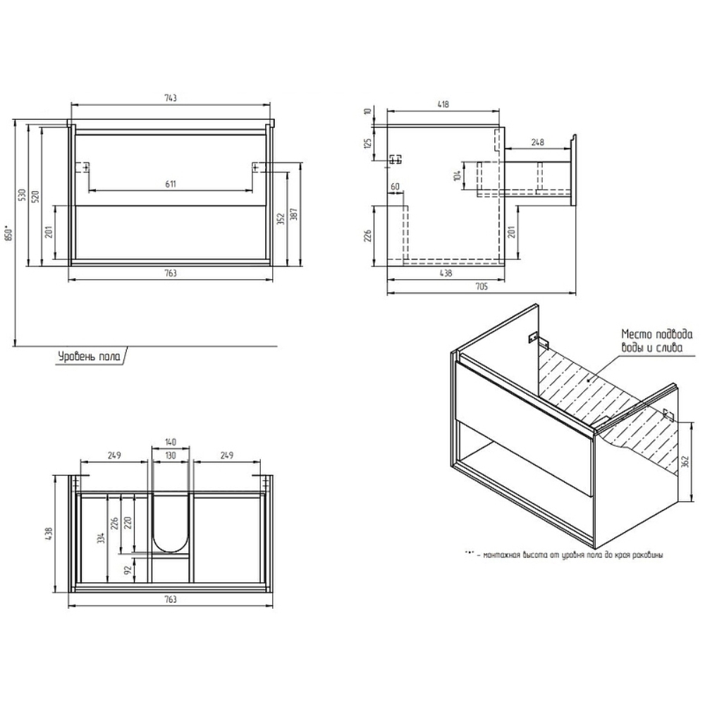 Тумба подвесная Cersanit Louna 75 Белый / Дерево 64071