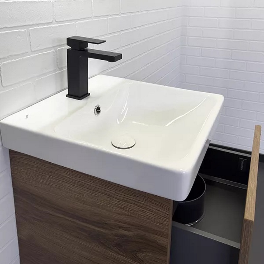 Тумба подвесная Comforty Дартфорд 45 с раковиной Адриана 45 Дуб тёмно-коричневый 00-00013694CF