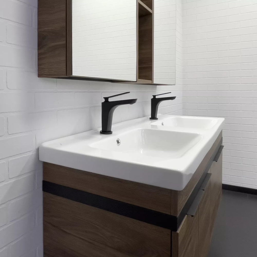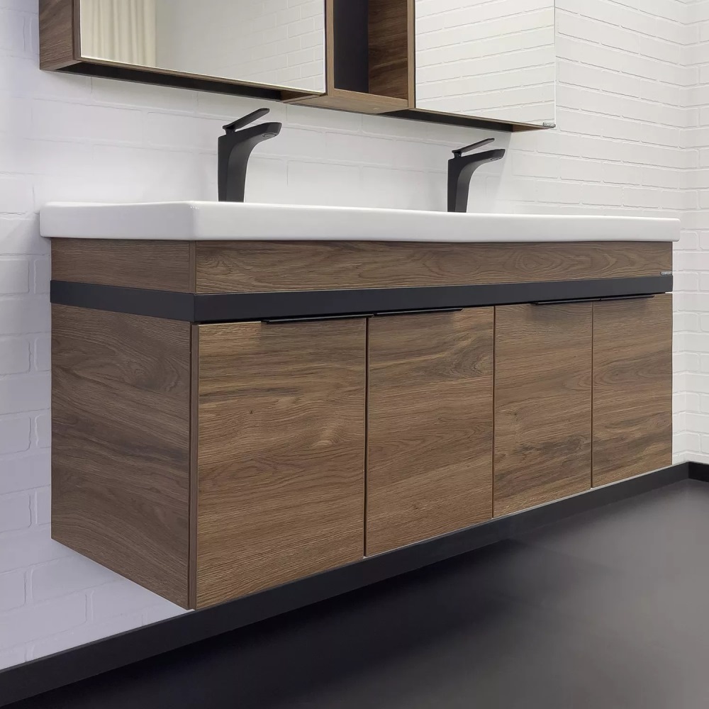 Тумба подвесная Comforty Дуэт 125 с раковиной на две чаши Гармония 125 Дуб темно-коричневый 00-00017178CF