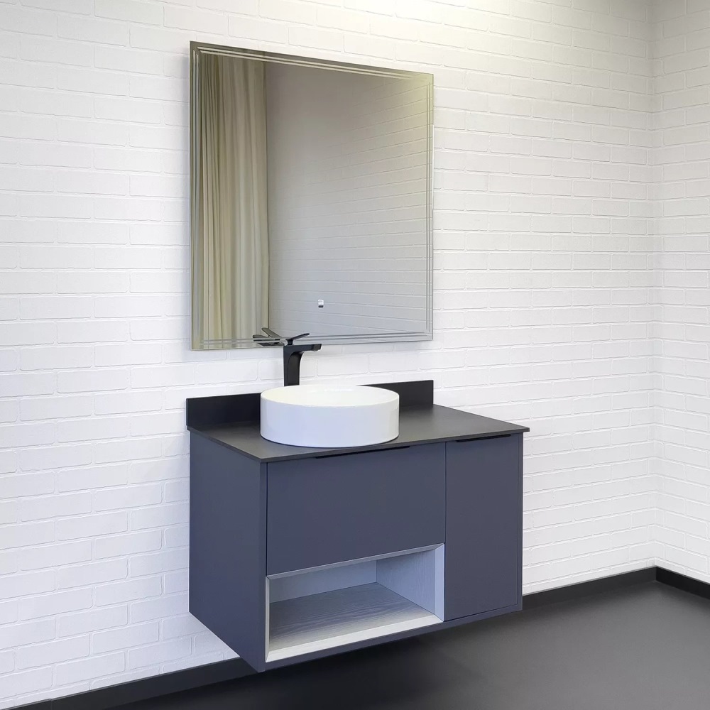 Тумба подвесная Comforty Джанкой 90 с черной столешницей и раковиной 9111 Антрацит 00-00017878CF