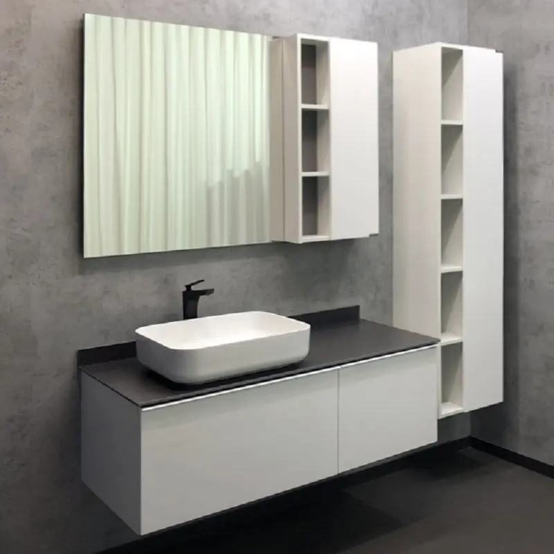 Тумба подвесная Comforty Милан 120 + раковина + серая New столешница Белый глянцевый 00-00011765