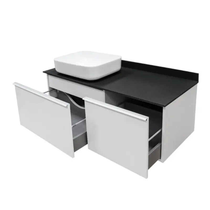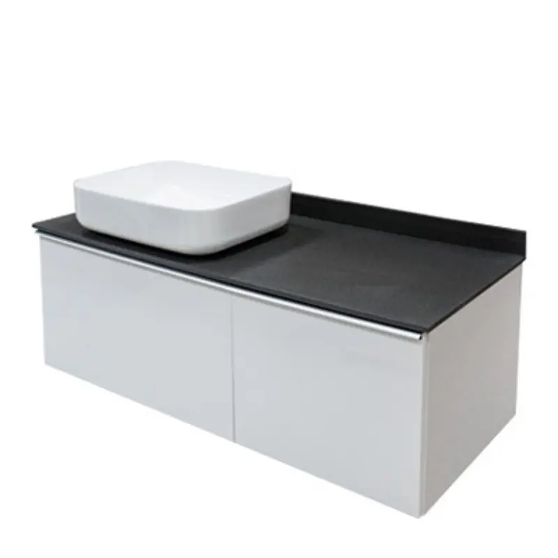 Тумба подвесная Comforty Милан 120 + раковина + серая столешница Белый глянцевый 4136268
