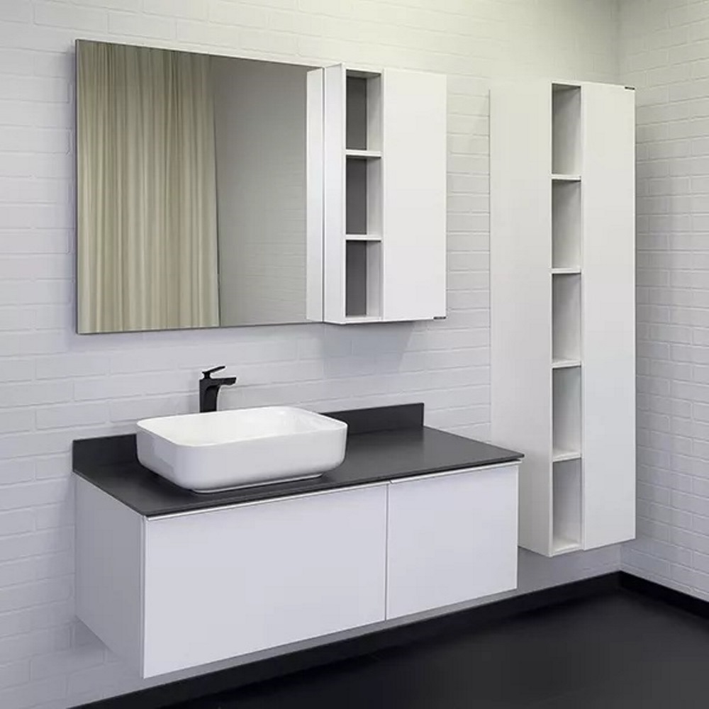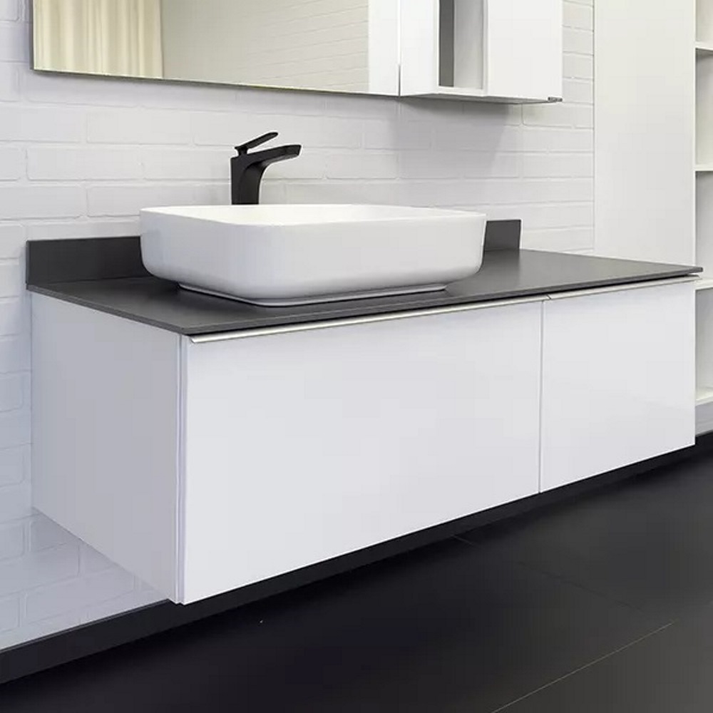 Тумба подвесная Comforty Милан 120 с графитовой столешницей с раковиной T-Y9378 Белый матовый 00-00013784СF