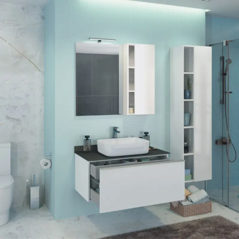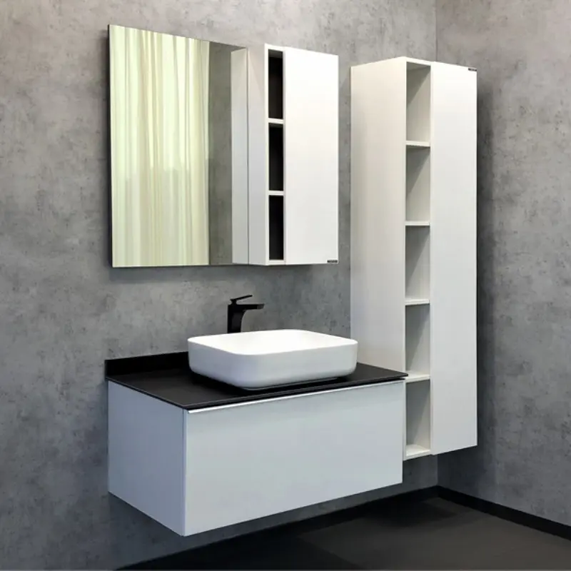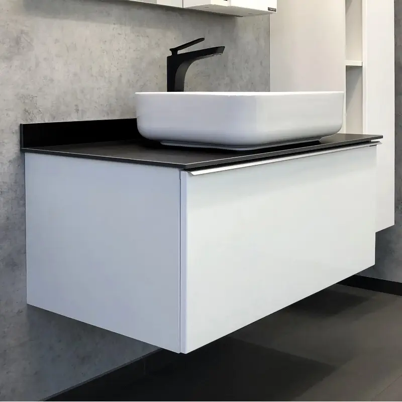 Тумба подвесная Comforty Милан 90,5 + раковина + антрацитовая столешница Белый глянцевый 00-00003824