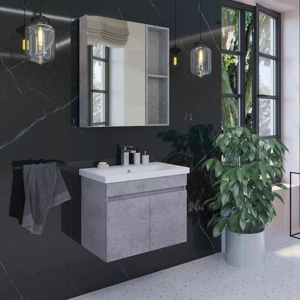 Тумба подвесная Comforty Осло 70 с раковиной Como 70 Бетон светлый 00-00006118CF