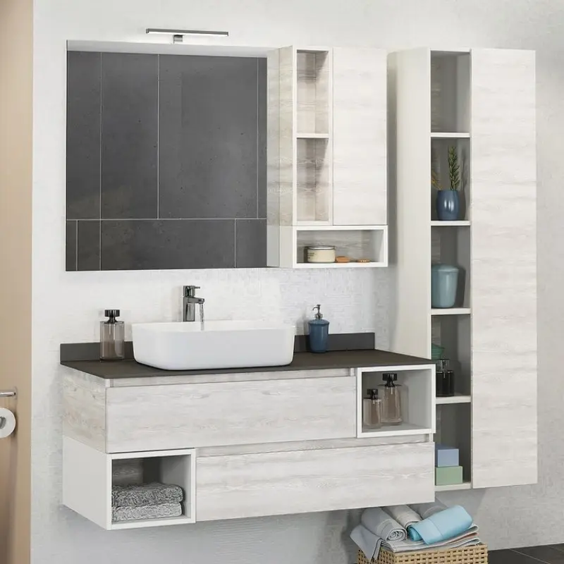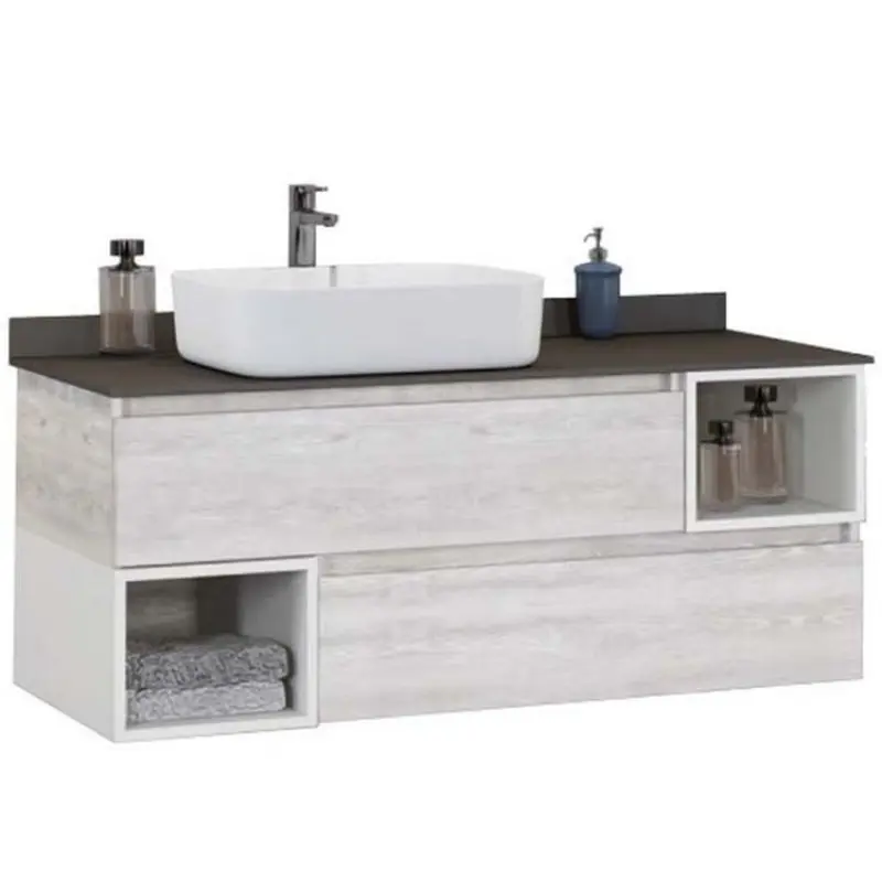Тумба подвесная Comforty Прага 120 + раковина Дуб белый / Серый 00-00004130CF