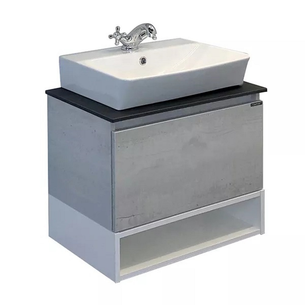 Тумба подвесная Comforty Прага 60 с серой столешницей и раковиной 9055RA-50 Дуб белый 00-00015289CF