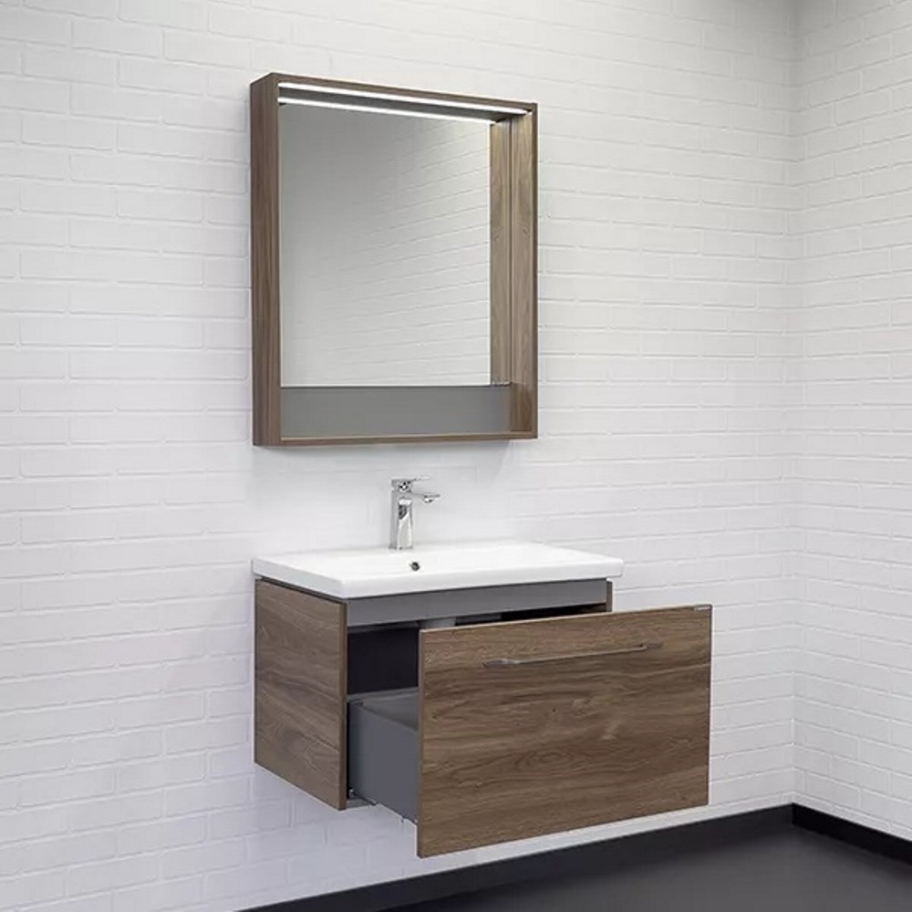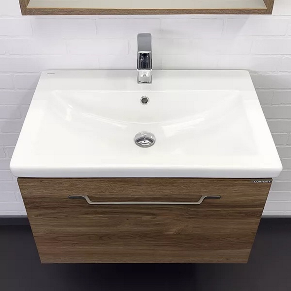 Тумба подвесная Comforty Томари 70 с раковиной Como 70 Дуб тёмно-коричневый 00-00001279CF